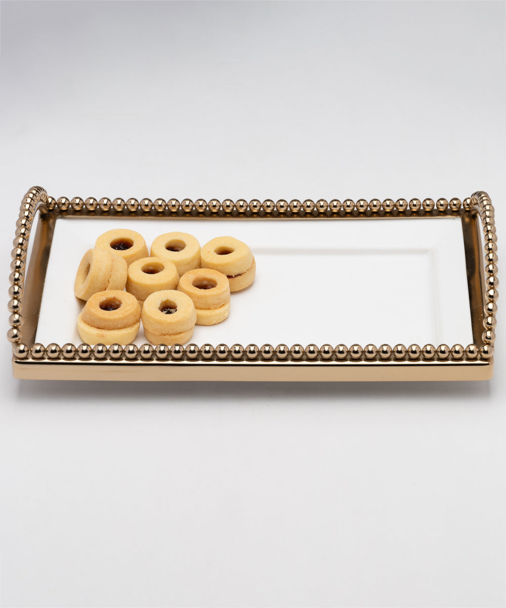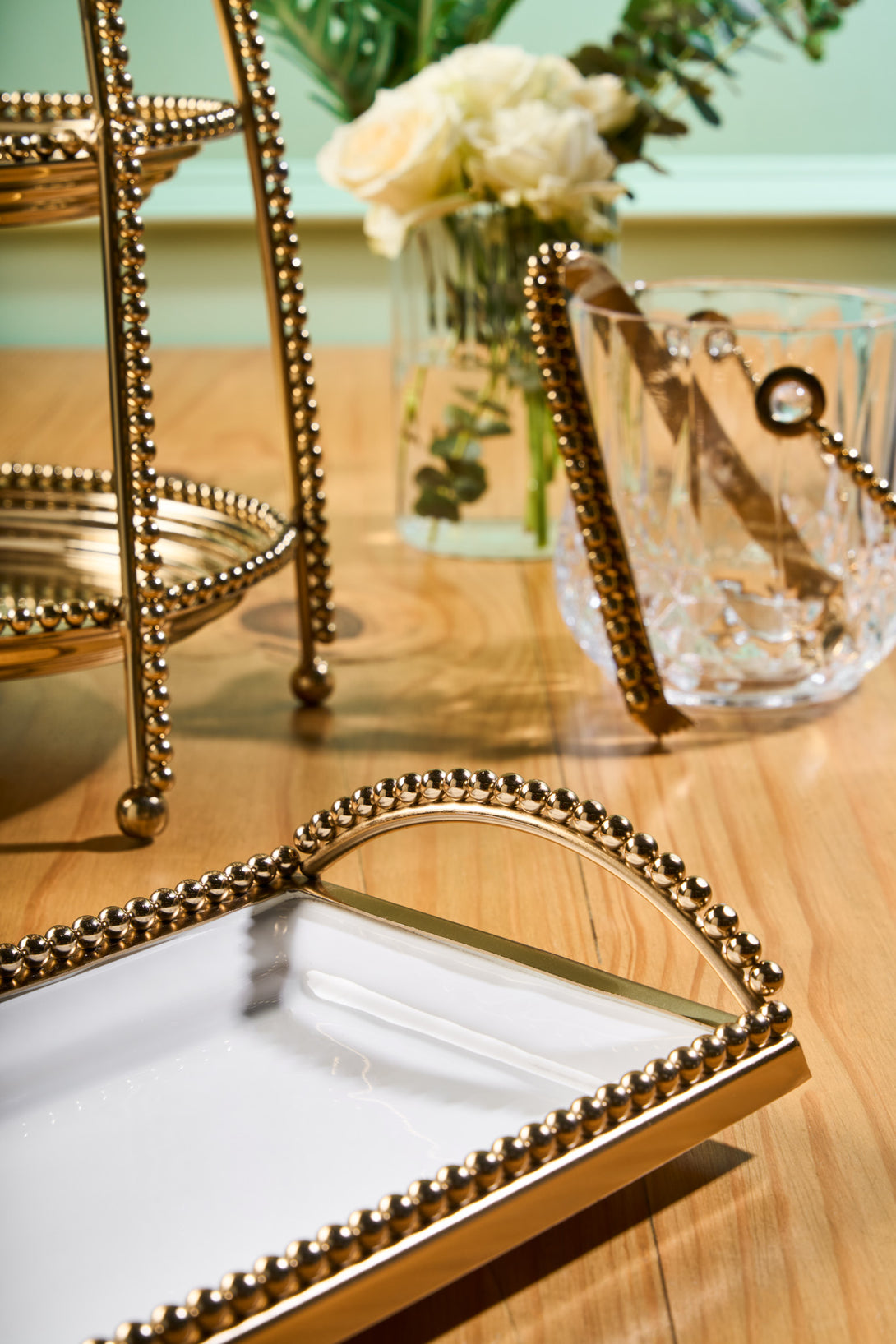 Elevate your hosting game with our elegant Beaded Serving Tray. Crafted with precision, this tray has intricate beadwork that adds a touch of sophistication to any table setting. Impress your guests and serve hors d'oeuvres, cheese etc with style. A must-have for every entertainer.